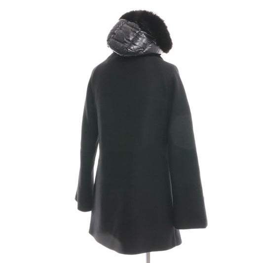 ■ MONCLER モンクレール コート アウター 上着 ゴールドファスナー ボタン フード レディース 1 ブラック ハンガー付き