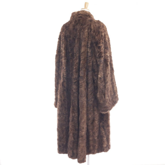 ■ フェンディ ローマ ロングコート 長袖 アウター ミンク ファー シルク ズッカ柄 ボタン レディース ブラウン 袋付き